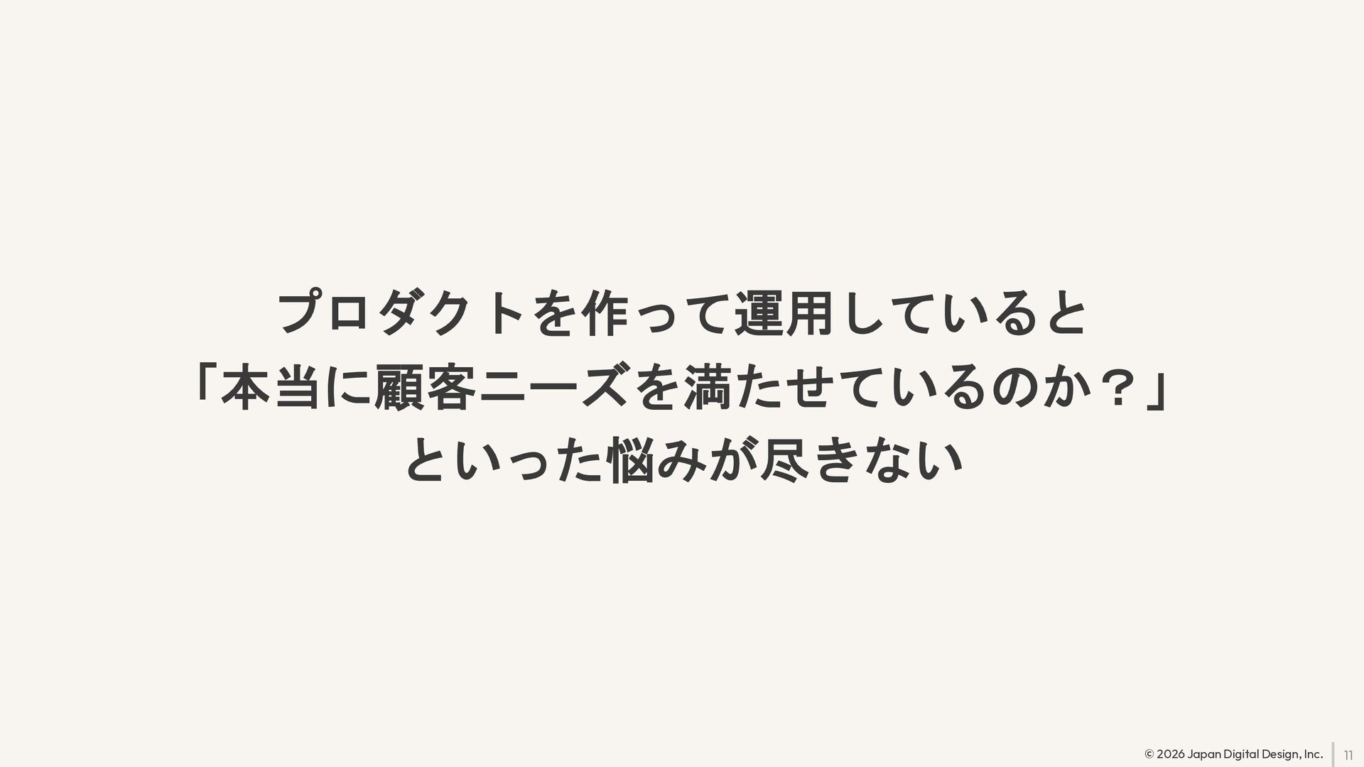 11 © 2026 Japan Digital Design, Inc. プロダクトを作って運用していると 「本当に顧客ニーズを満たせているのか?」 といった悩みが尽きない
