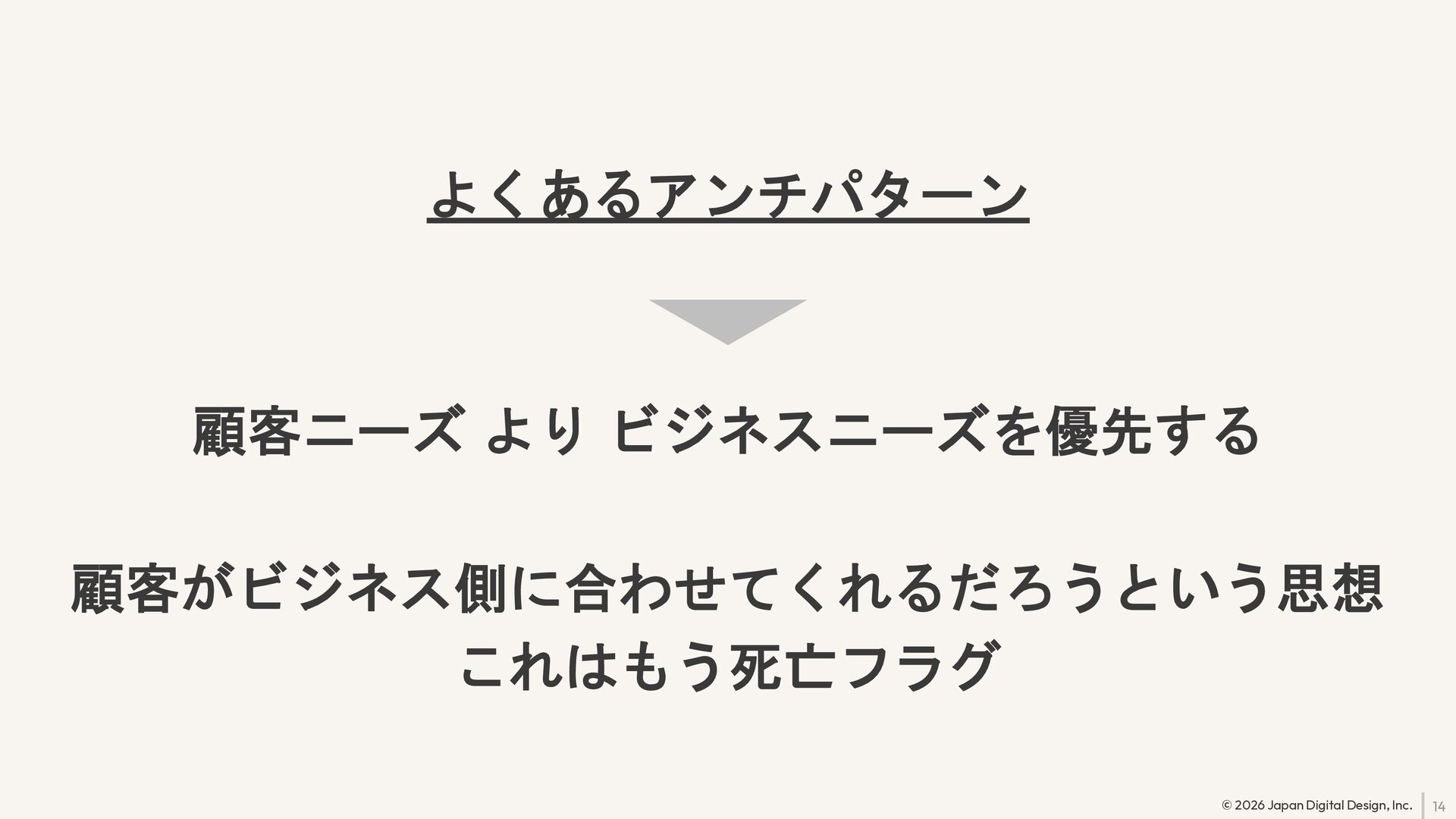 14 © 2026 Japan Digital Design, Inc. よくあるアンチパターン 顧客ニーズ より