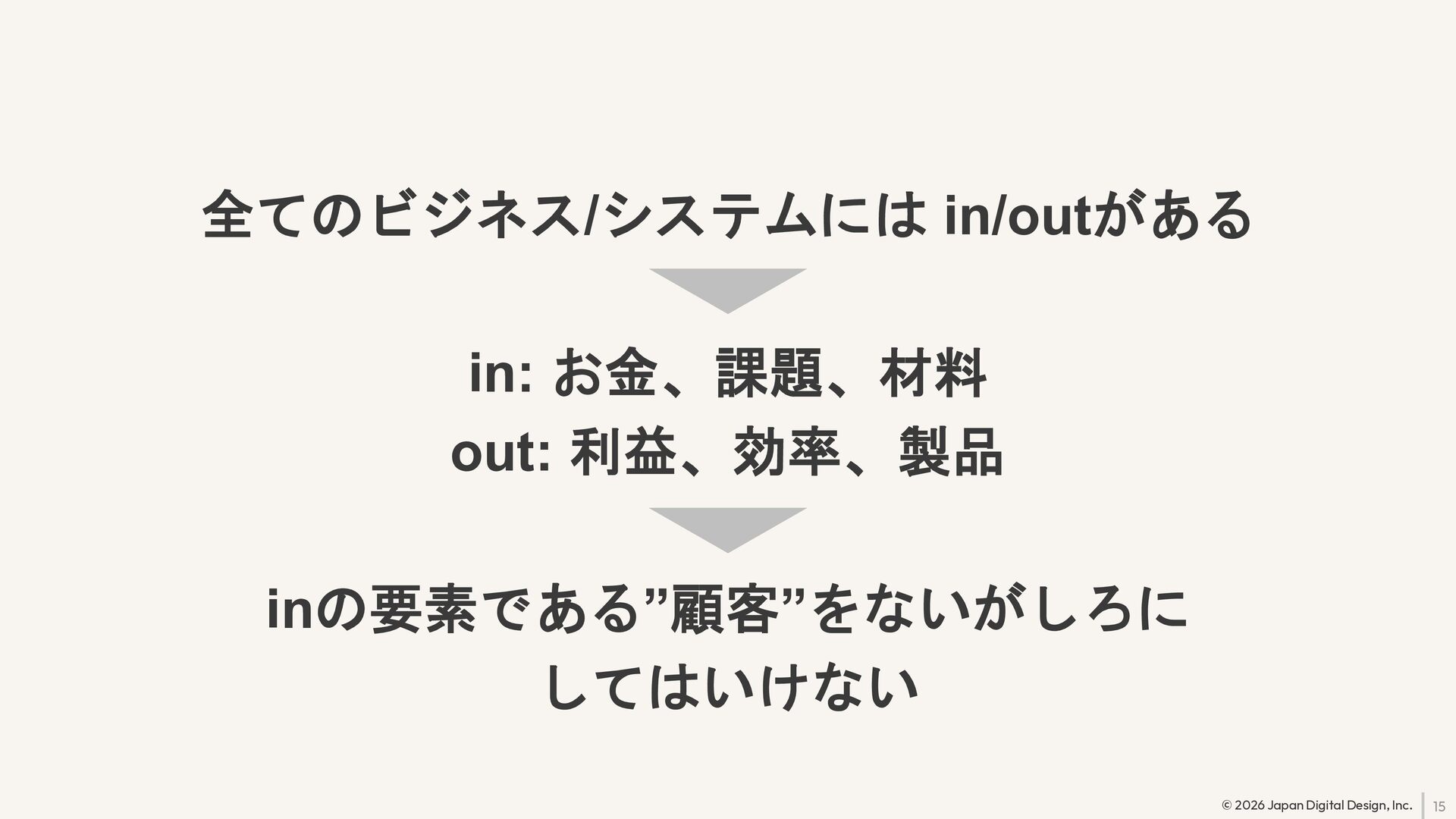 15 © 2026 Japan Digital Design, Inc. 全てのビジネス/システムには in/outがある in: