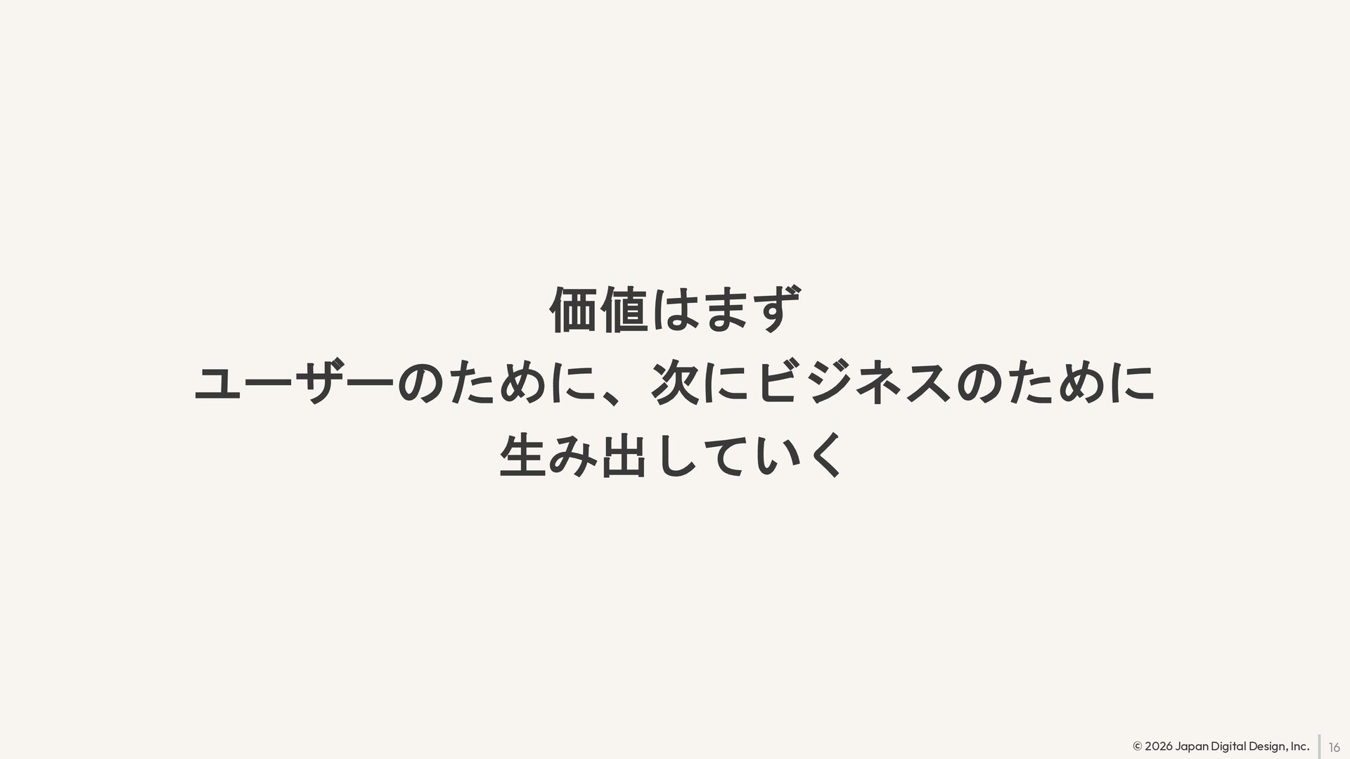 16 © 2026 Japan Digital Design, Inc. 価値はまず ユーザーのために、次にビジネスのために 生み出していく