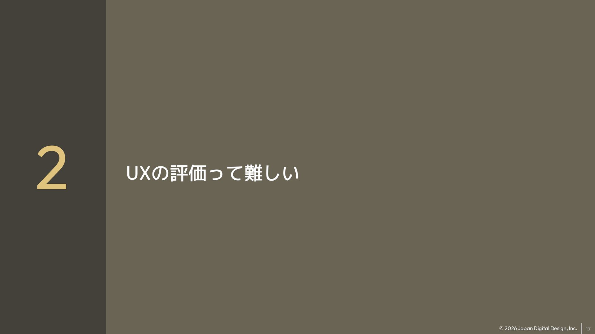 17 © 2026 Japan Digital Design, Inc. 2 UXの評価って難しい