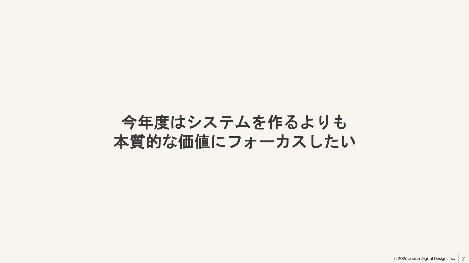 21 © 2026 Japan Digital Design, Inc. 今年度はシステムを作るよりも 本質的な価値にフォーカスしたい
