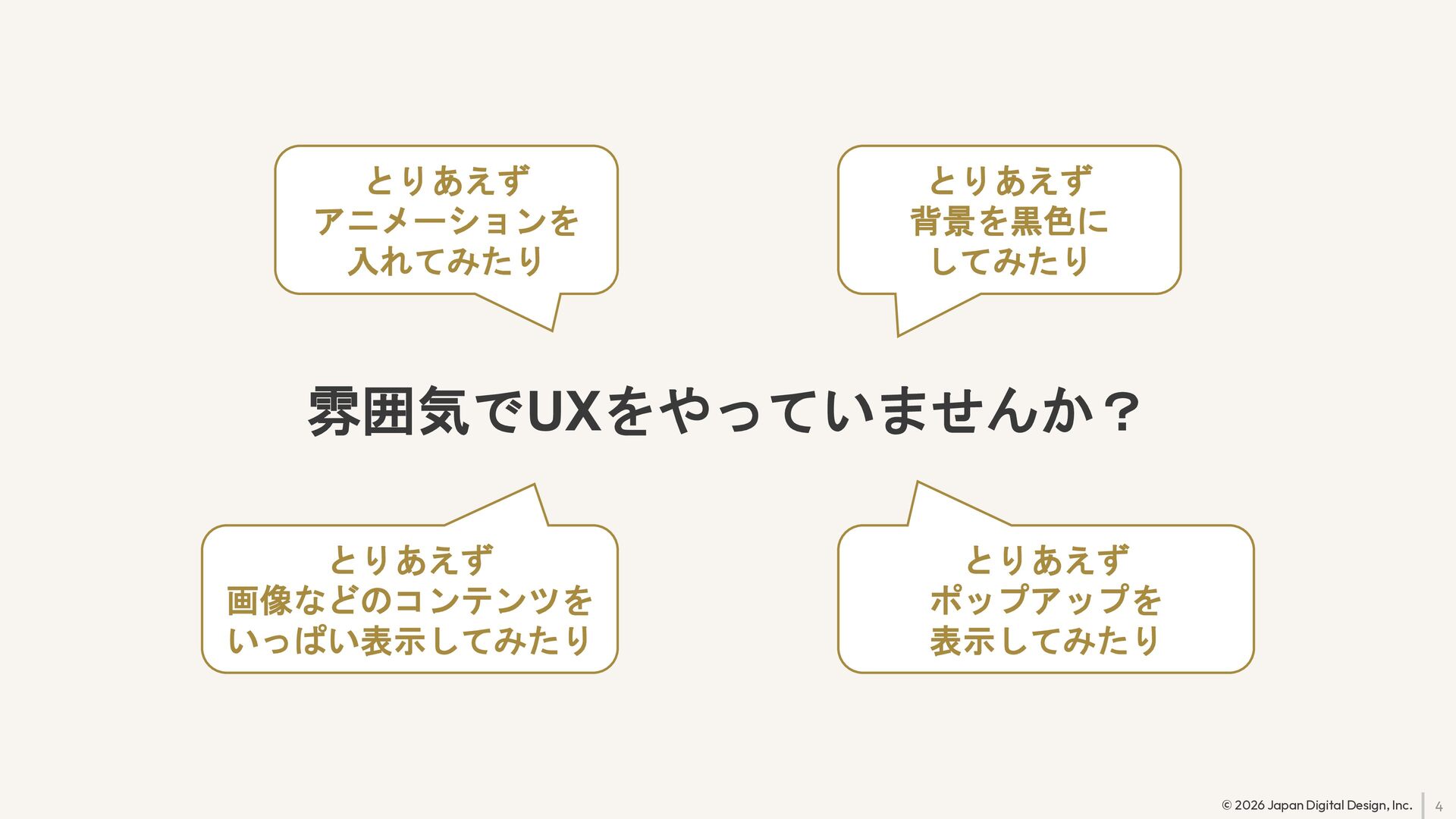 4 © 2026 Japan Digital Design, Inc. 雰囲気でUXをやっていませんか? とりあえず アニメーションを