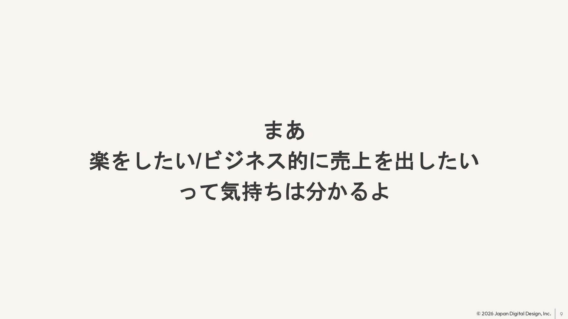9 © 2026 Japan Digital Design, Inc. まあ 楽をしたい/ビジネス的に売上を出したい って気持ちは分かるよ