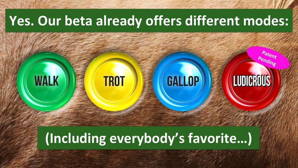 This is our perfect pitch deck we're sending out to investors. You can learn so much from it. Also we'll be a #BillionDollarIdea. Or do you think anybody will want to ride a scooter, if they also can ride a Pony instead?