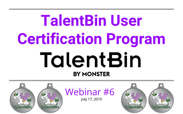 TalentBin User Certification Program Webinar #6 July 17, 2015