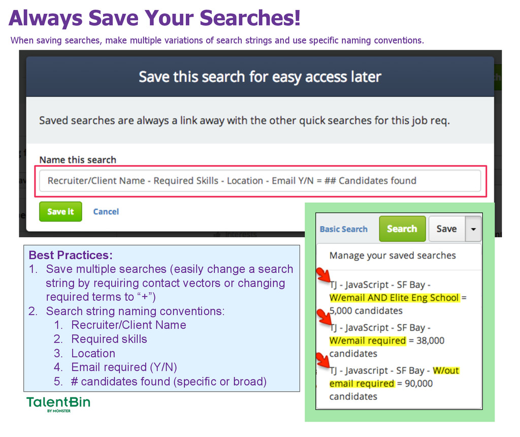 More here: http://support.talentbin.com/customer/portal/articles/1768619-webinar-2-%22maximizing-efficiency%22