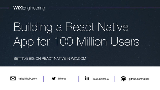 At Wix.com, we’ve been betting big on React Native. The official Wix app is developed completely in React Native and designed to cater to Wix’s growing userbase of over 100 million users. Production of this scale comes with its set of challenges, especially when using a framework this young.