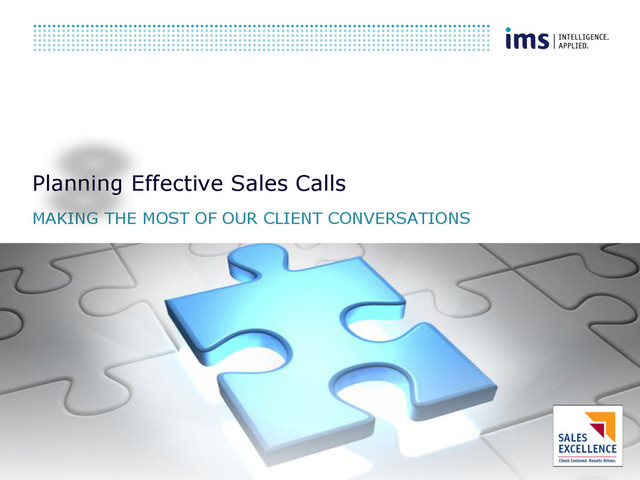 touch points by other IMS sales and consulting teammates. • Drive more successful cross- geography or consulting, cross- selling deals. • Use it to get feedback from sales management. • Improve your list of questions by working with your team and brainstorming. Fixed Date [via Insert tab > Header & Footer] Footer [via Insert tab > Header & Footer] 23 Always use: • For Key Calls - $50k and up* • When you physically travel to clients (most countries) • Meetings with client executives *threshold differs by BU or country Consider for: top country deals, cross- functional deals, meetings with new clients, meetings every 6 months with existing clients; wide IMS team involved. W H E N GENERAL GUIDELINE: For Key Calls complete 2 per month P L A N N I N G E F F E C T I V E S A L E S C A L L S IMS SALES LEADER TIP: “Complete live during group planning sessions to save time” B E N E F I T S