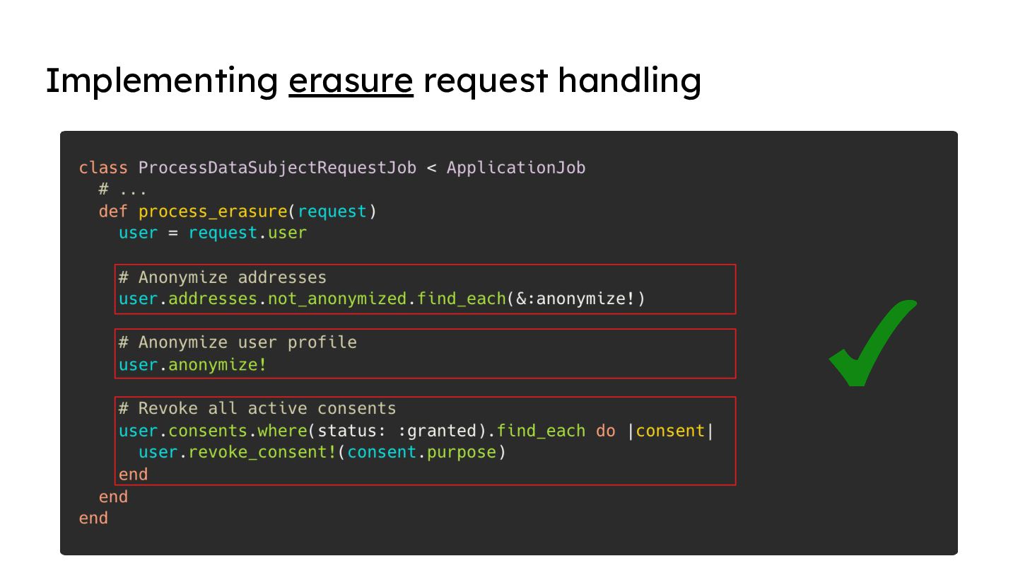 User data privacy is no longer a competitive advantage - it’s a legal requirement. Regulations like GDPR and LGPD set rules that many teams still see privacy as a barrier to speed or innovation. This talk shows how to implement pragmatic, "on Rails" data privacy, aligning with regulations while maintaining product quality, agility, and innovation.