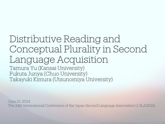 Second Language Association (J-SLA2024) Tamura Yu (Kansai University) Fukuta Junya (Chuo University) Takayuki Kimura (Utsunomiya University) Distributive Reading and Conceptual Plurality in Second Language Acquisition