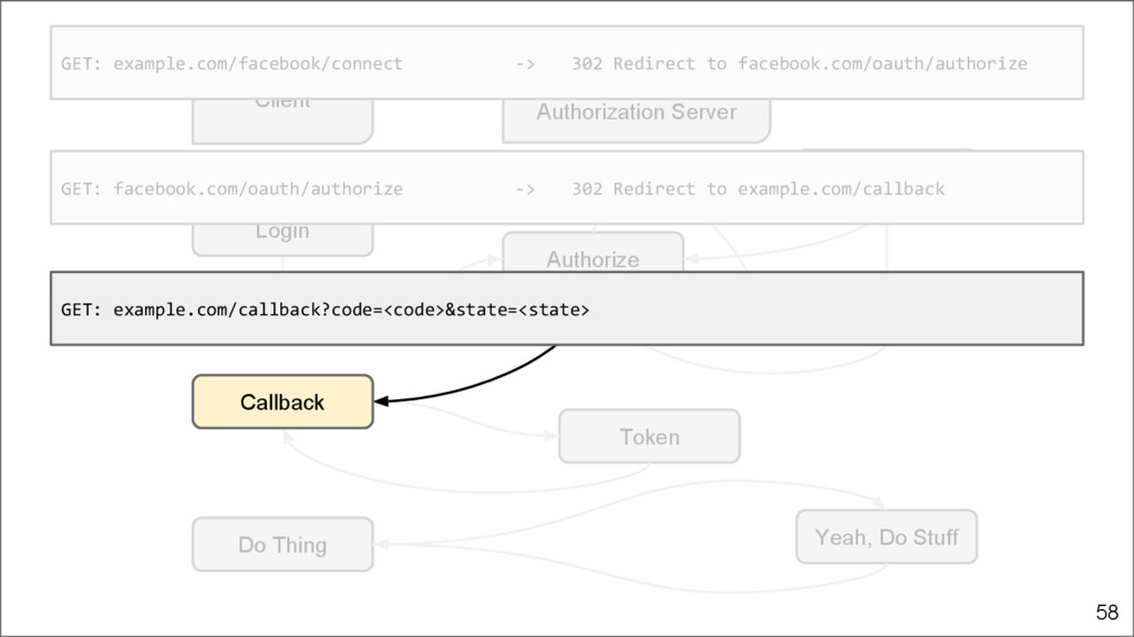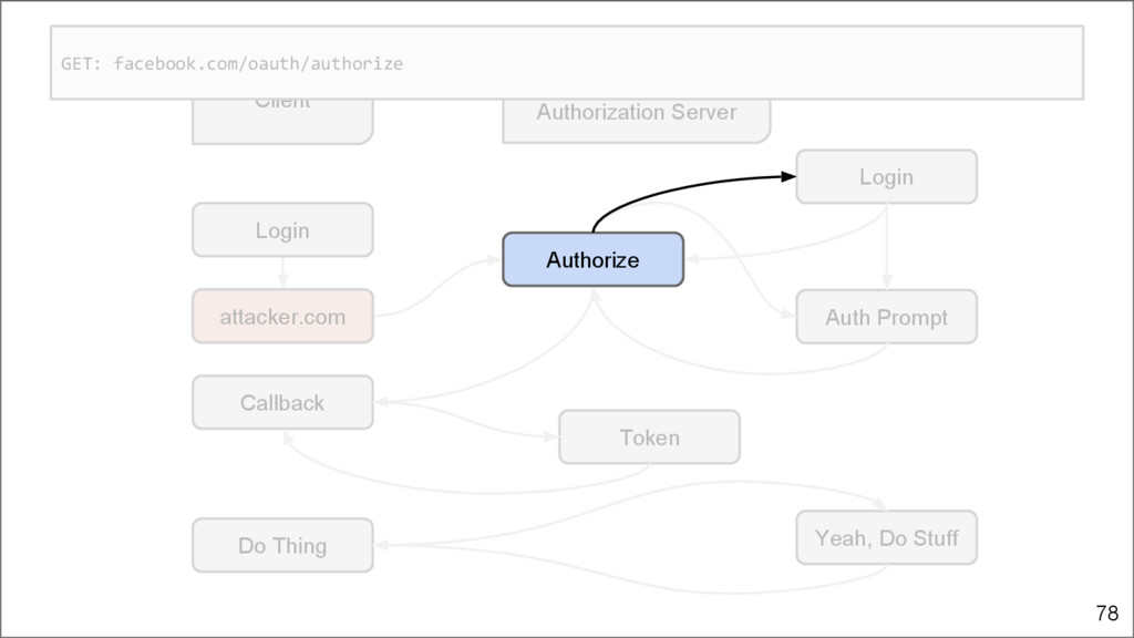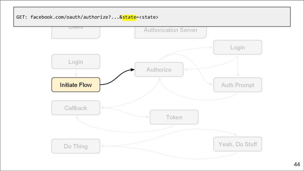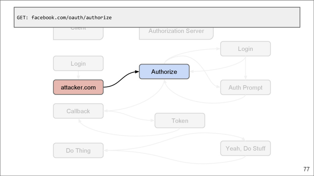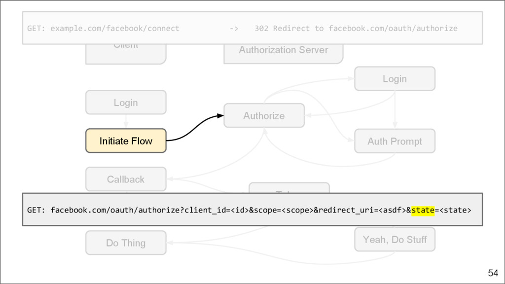 Authorize Auth Prompt Do Thing Yeah, Do Stuff Token GET: facebook.com/oauth/authorize?client_id=<id>&scope=<scope>&redirect_uri=<asdf>&state=<state> Authorize Need to login? Need to accept scope permissions? 27