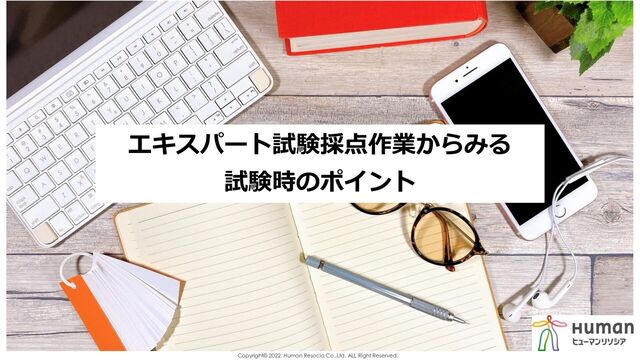 Copyright© 2022 Human Resocia Co.,Ltd. ALL Right Reserved. エキスパート試験採点作業からみる 試験時のポイント