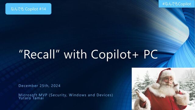 customers, Recall is removed by default on PCs managed by an IT administrator for work or school, as well as Enterprise versions of Windows 11.” https://blogs.windows.com/windows-insider/2024/11/22/previewing- recall-with-click-to-do-on-copilot-pcs-with-windows-insiders-in-the- dev-channel/ • 詳細はブログ記事にて https://sccm.jp/2024/11/23/post-6721/
