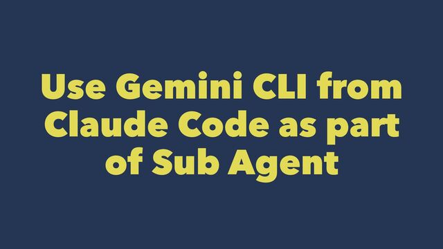 Add MCP Server claude mcp add -s project gemini-cli -- npx mcp-gemini-cli --allow-npx // Edit sub agent definition Please ask gemini-cli to do the investigation work but the report should be prepared by this agent.