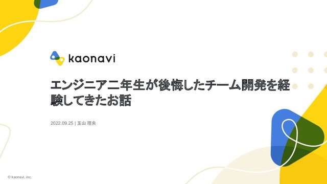 エンジニア二年生が後悔したチーム開発を経 験してきたお話 2022.09.25 | 玉山 理央 © kaonavi, inc.