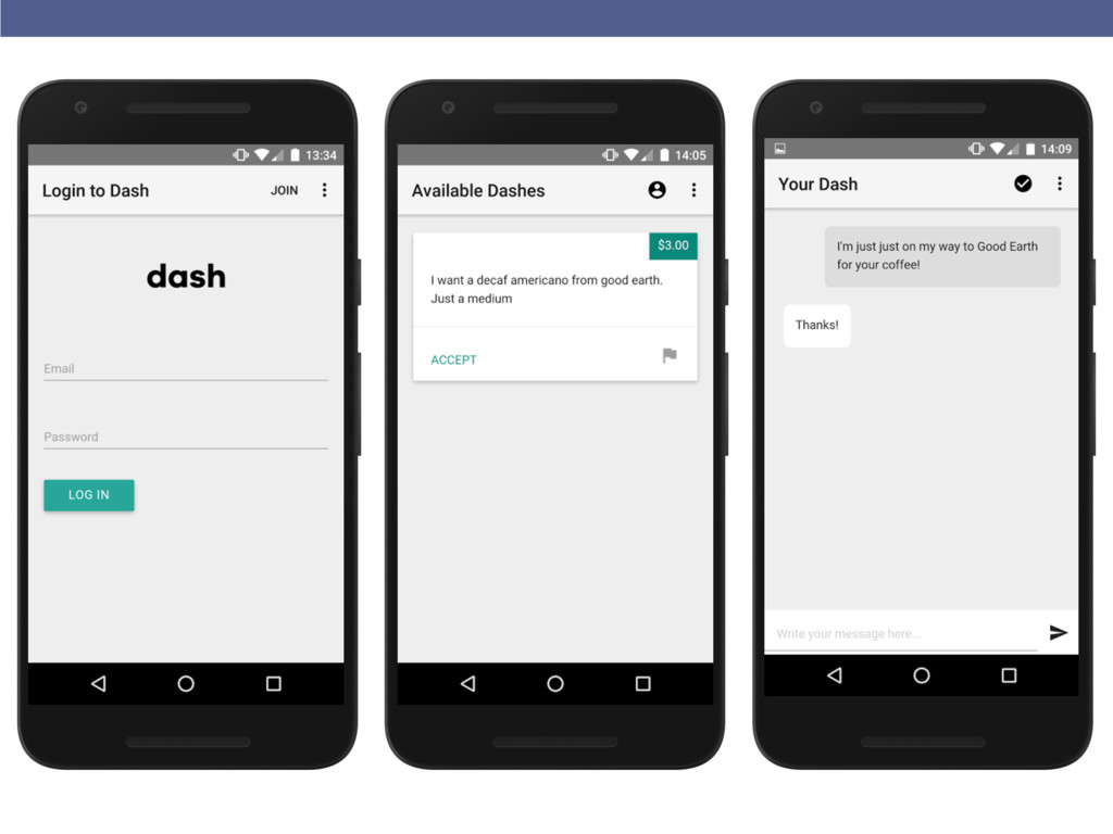 In March we changed directions and started working on a brand new project called dash - a simply way for students to run errands for each other.