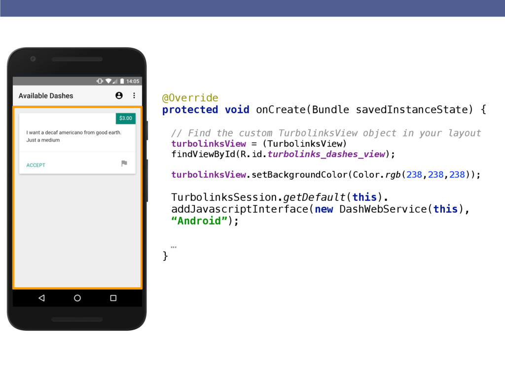 • Learn how to integrate turbolinks native wrappers with Android and some pitfalls to avoid when building your native controls.