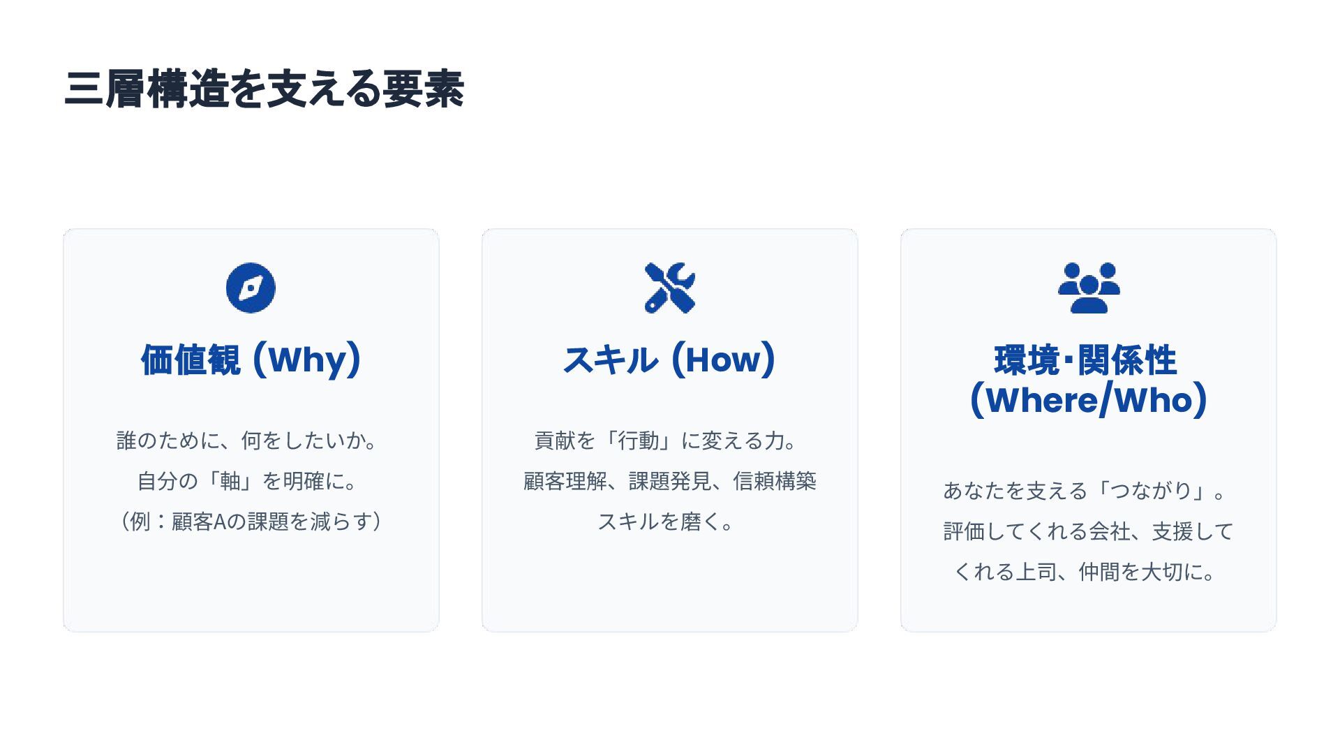このレイヤーがある人は、環境が変わっても「自分が何を大事にして働きたいのか」を見失いません。