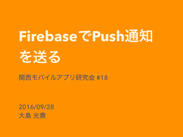 FirebaseͰPush௨ ΛૹΔ ؔϞόΠϧΞϓϦݚڀձ #18 2016/09/28 େౡ ޫو