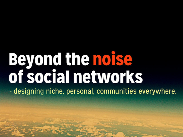 large scale. For that, you need to form relationships and gradually form the gravitational attraction between them that characterizes community. Andy Oram ‘Social networks are not communities and other discussions from the Community Leadership Summit