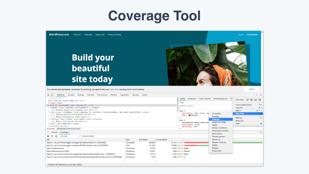 Introduction to using Puppeteer in conjunction with Dev Tools such as Coverage tool.