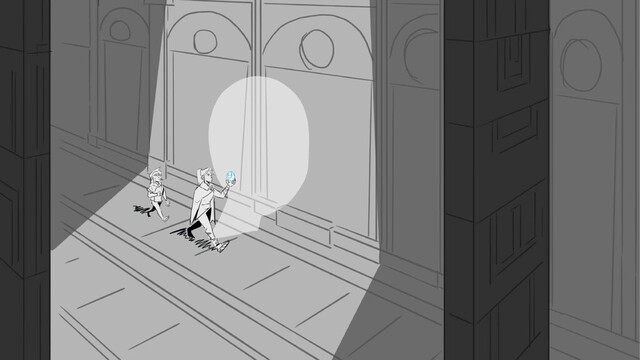 A personal storyboard about two sisters doing maintenance at an abandoned temple.