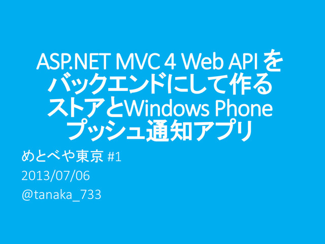 ASP.NET MVC4 Web APIをバックエンドにして作るストアとWindows Pho...
