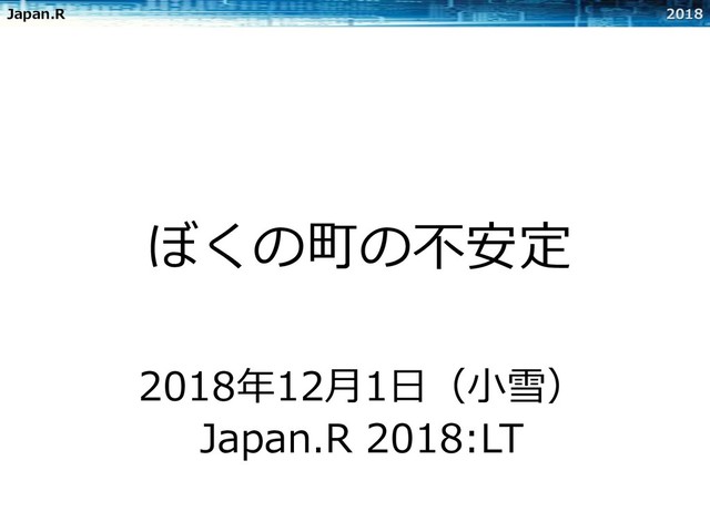 Japan.R 2018 ぼくの町の不安定 2018年12⽉1⽇(⼩雪) Japan.R 2018:LT