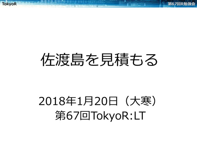 TokyoR 第67回R勉強会 佐渡島を⾒積もる 2018年1⽉20⽇(⼤寒) 第67回TokyoR:LT