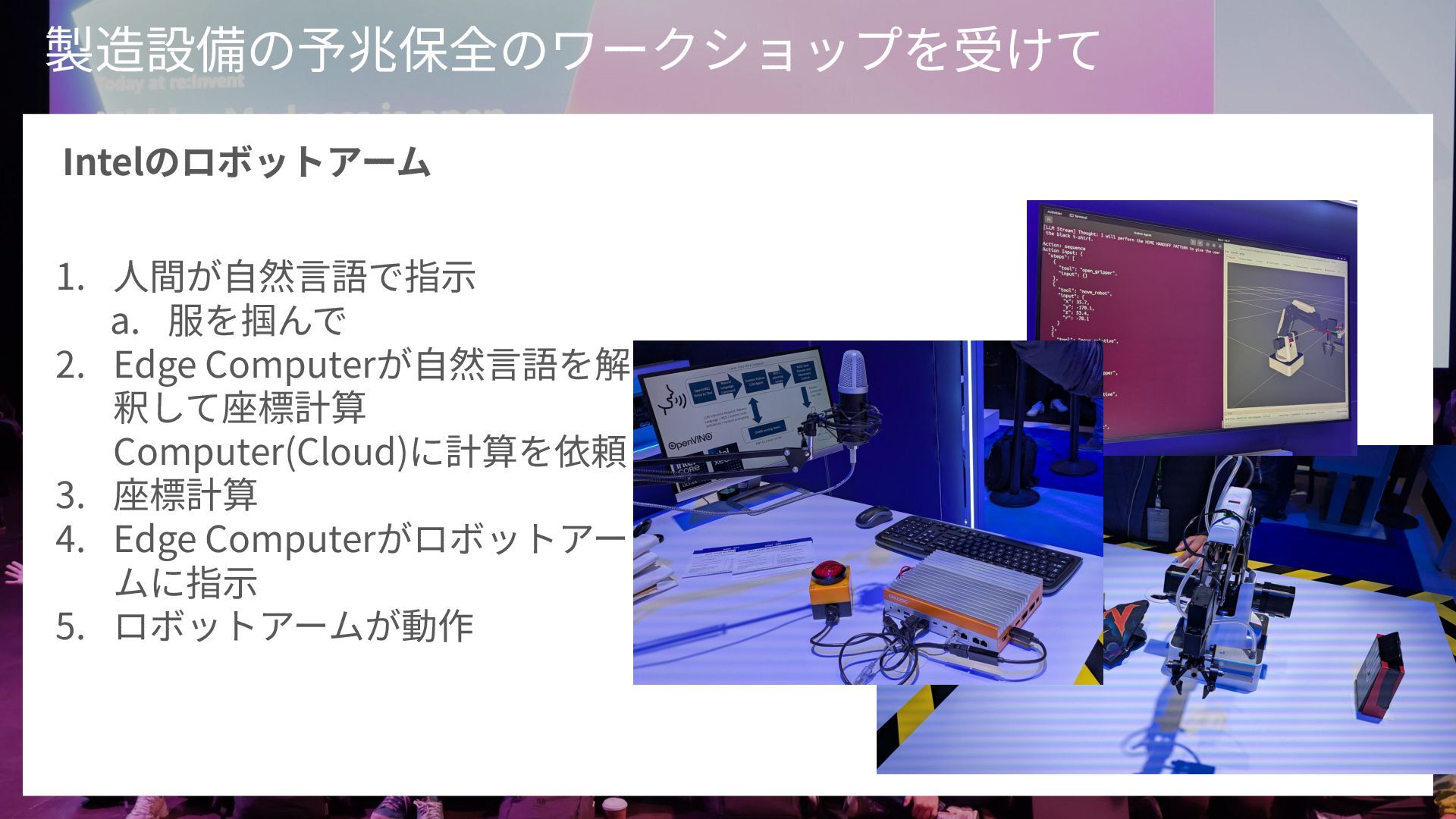 AWSのヒューマノイドロボットおよび自然言語で指示可能なIntelのロボットアームの展示紹介