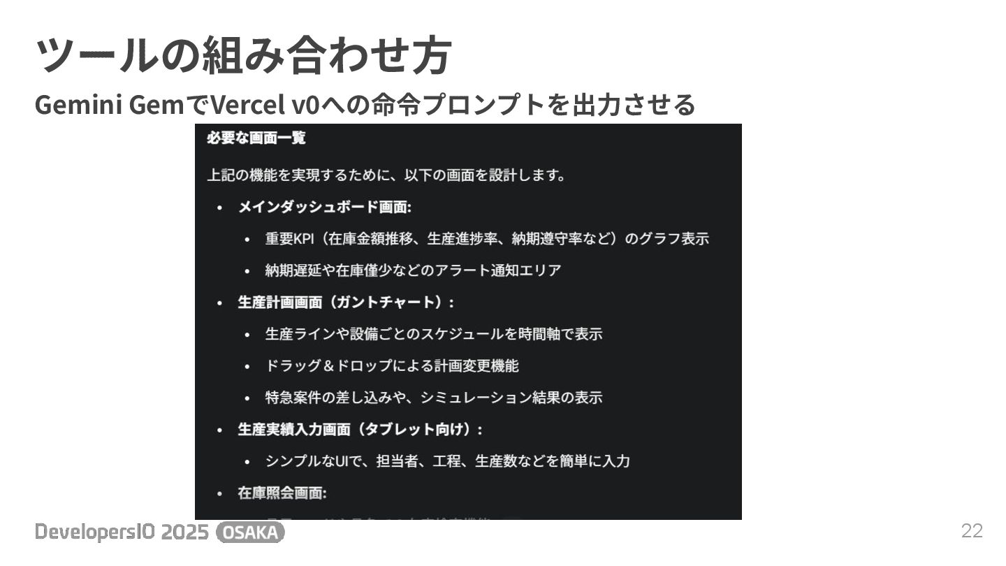 ツールの組み合わせ⽅ 22 Gemini GemでVercel v0への命令プロンプトを出⼒させる