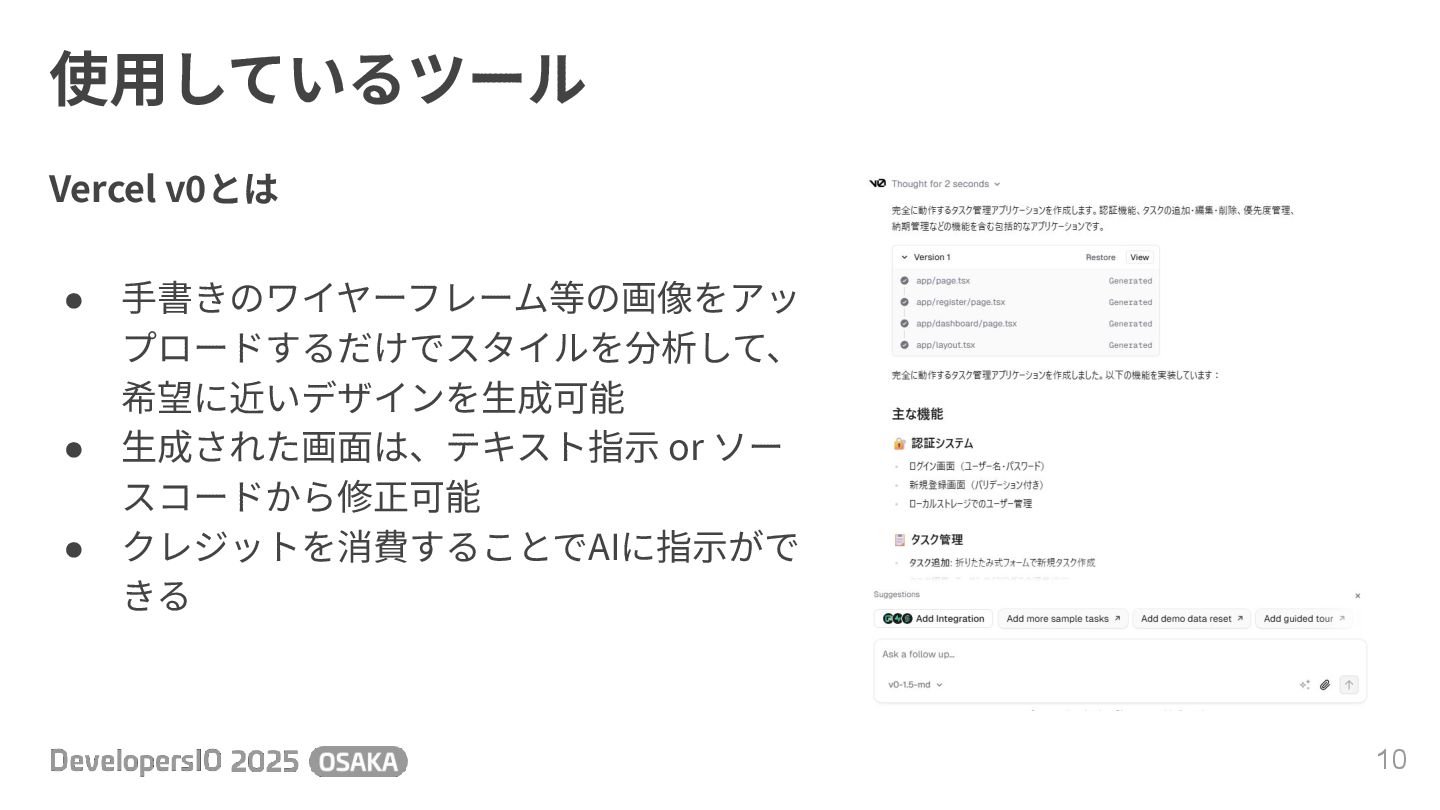 使⽤しているツール 11 Vercel v0とは