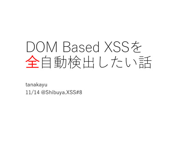 DOM Based XSSを 全自動検出したい話 tanakayu 11/14 @Shibuya.XSS#8