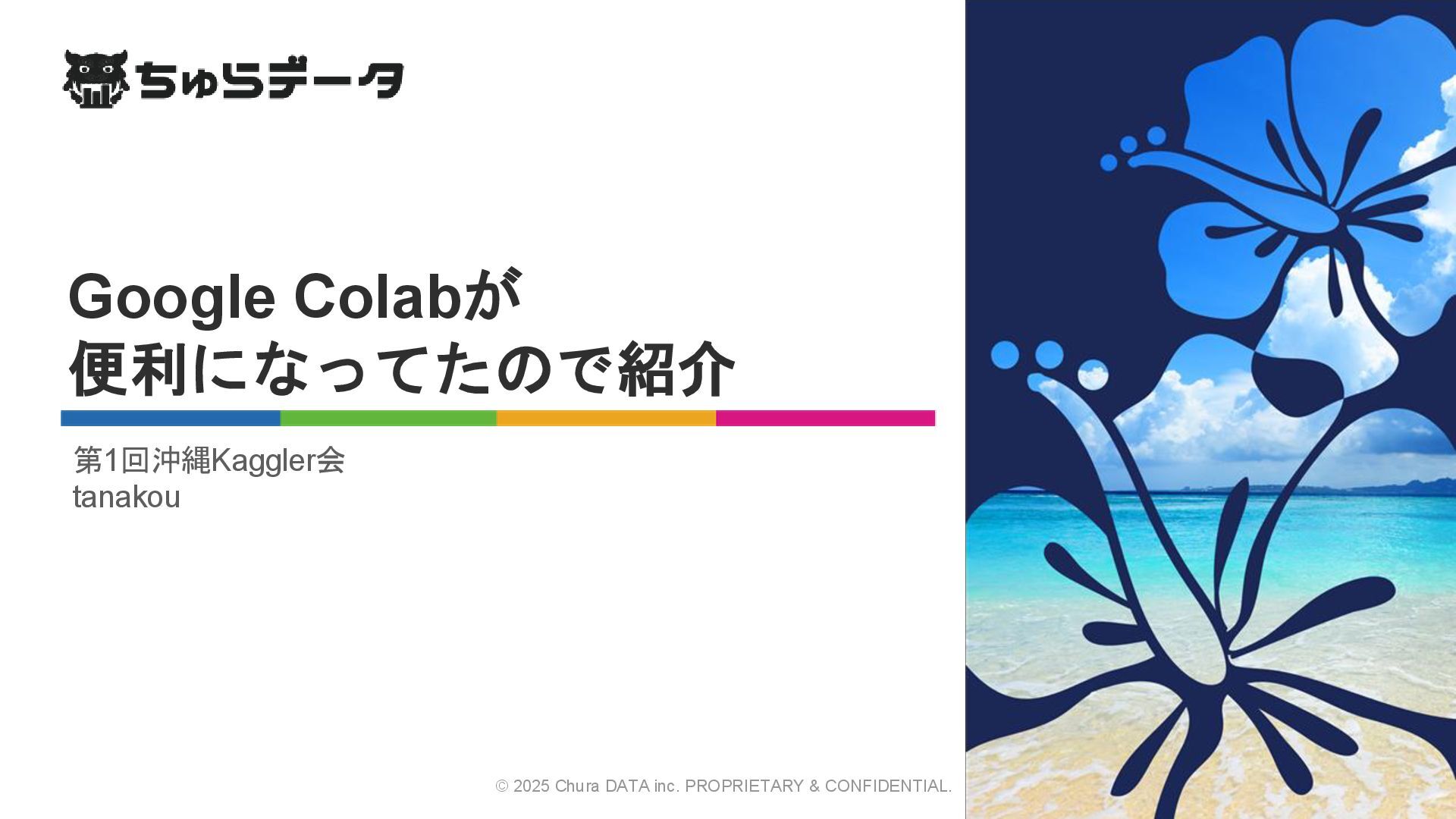 Google Colabが 便利になってたので紹介 第1回沖縄Kaggler会 tanakou © 2025 Chura DATA inc.