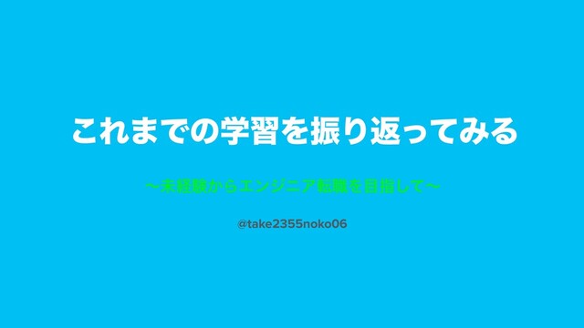 MENTAを利用して未経験から学習を開始して、転職活動を始めるまで半年ほど経過したので、自身の振り返りとしてスライドをまとめました。 またブログにも記事を書きましたので、よろしければご覧ください。 https://take2355noko06.com/2020/06/15/post-220/