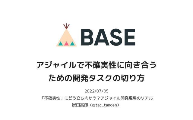 2022/07/05 「不確実性」にどう立ち向かう?アジャイル開発現場のリアル 炭田高輝(@tac_tanden) アジャイルで不確実性に向き合う ための開発タスクの切り方