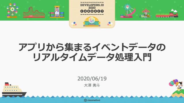 アプリから集まるイベントデータの リアルタイムデータ処理⼊⾨ 2020/06/19 ⼤澤 勇⽃