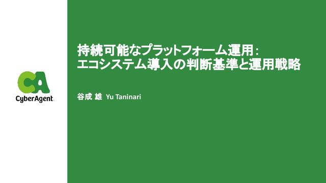 持続可能なプラットフォーム運用: エコシステム導入の判断基準と運用戦略 谷成 雄 Yu Taninari