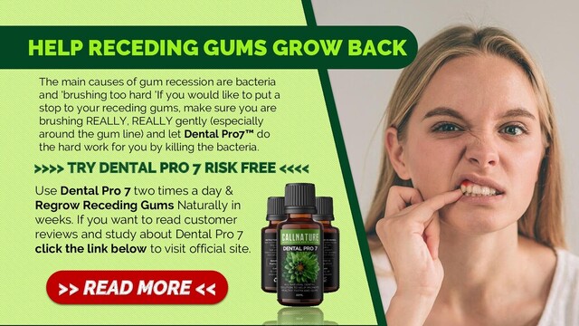 recession are bacteria and 'brushing too hard 'If you would like to put a stop to your receding gums, make sure you are brushing REALLY, REALLY gently (especially around the gum line) and let Dental Pro7™ do the hard work for you by killing the bacteria. >>>> TRY DENTAL PRO 7 RISK FREE <<<< Use Dental Pro 7 two times a day & Regrow Receding Gums Naturally in weeks. If you want to read customer reviews and study about Dental Pro 7 click the link below to visit official site. >> READ MORE <<