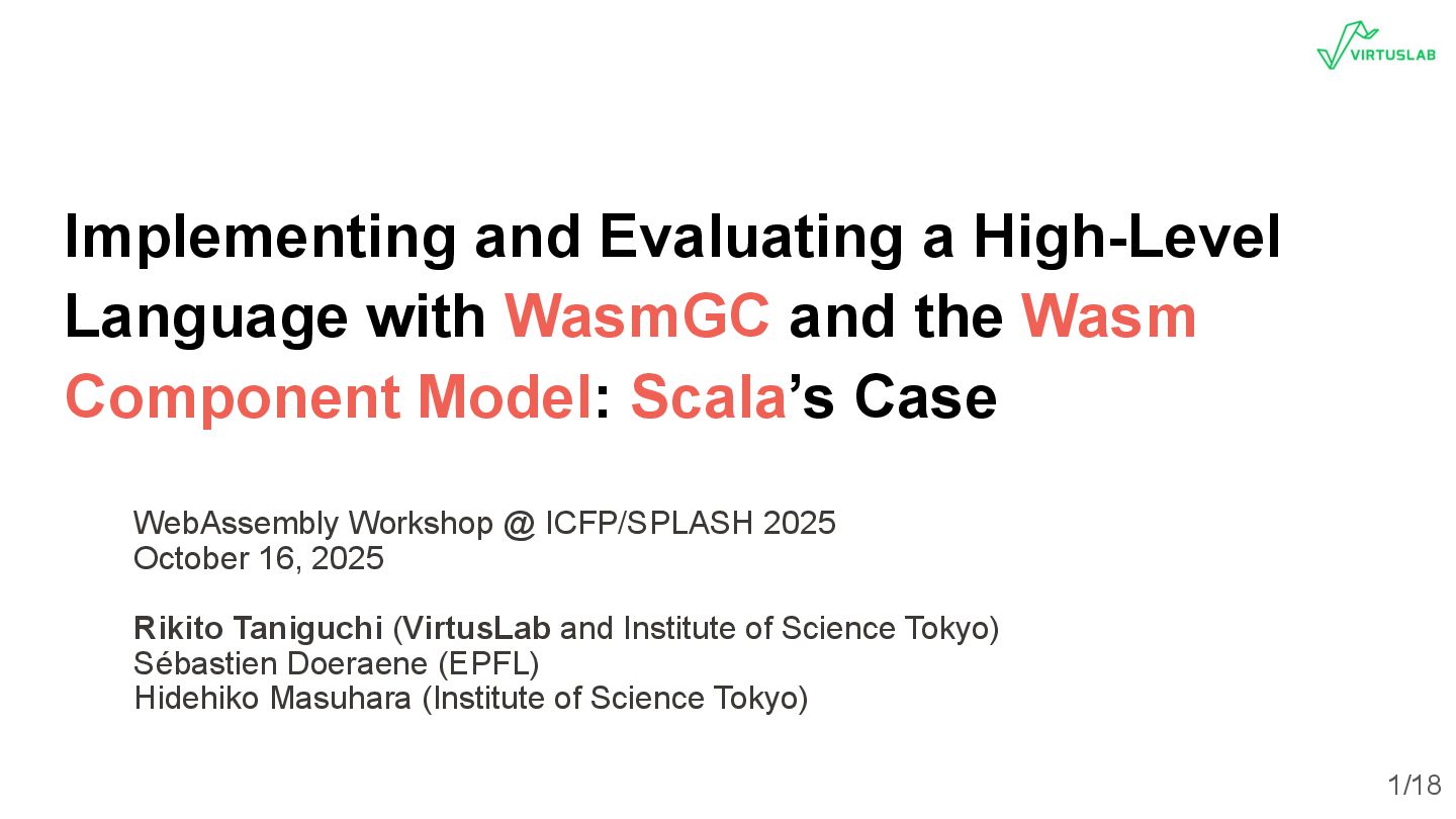 Wasm Component Model: Scala’s Case WebAssembly Workshop @ ICFP/SPLASH 2025 October 16, 2025 Rikito Taniguchi (VirtusLab and Institute of Science Tokyo) Sébastien Doeraene (EPFL) Hidehiko Masuhara (Institute of Science Tokyo) 1/18