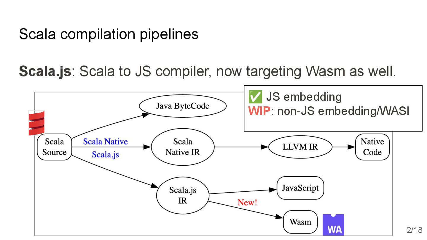 2. Scala compilation pipelines Scala.js: Scala to JS compiler, now targeting