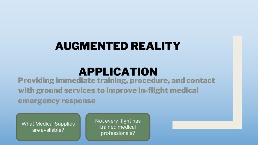 Boeing, coined the phrase “augmented reality” in the 90s* • Augmented = making something greater, enhancing it • Roots in Science Fiction books, today is a Reality *Augmented Reality - The Past, The Present and The Future (2019), Interaction Design Foundation Elements - Display - Sensor or input - Software Industry Applications - Construction - Education - Emergency Management Types - Location-based - Projection-based - Superimposition