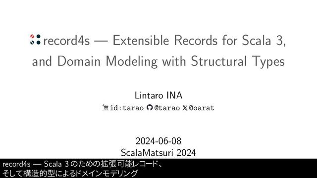 record4s --- Scala 3のための拡張可能レコード、そして構造的型によるドメインモデリング