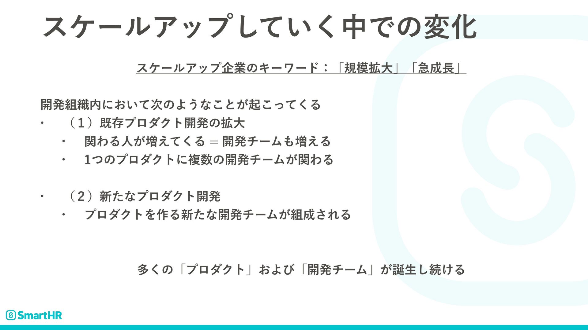 εέʔϧΞοϓ͍ͯ͘͠தͰͷมԽ εέʔϧΞοϓاۀͷΩʔϫʔυɿʮن֦େʯʮٸʯ ։ൃ৫ʹ͓͍ͯ࣍ͷΑ͏ͳ͜ͱ͕ىͬͯ͘͜Δ w ʢ̍ʣطଘϓϩμΫτ։ൃͷ֦େ w ؔΘΔਓ͕૿͑ͯ͘Δ։ൃνʔϜ૿͑Δ w ͭͷϓϩμΫτʹෳͷ։ൃνʔϜ͕ؔΘΔ w