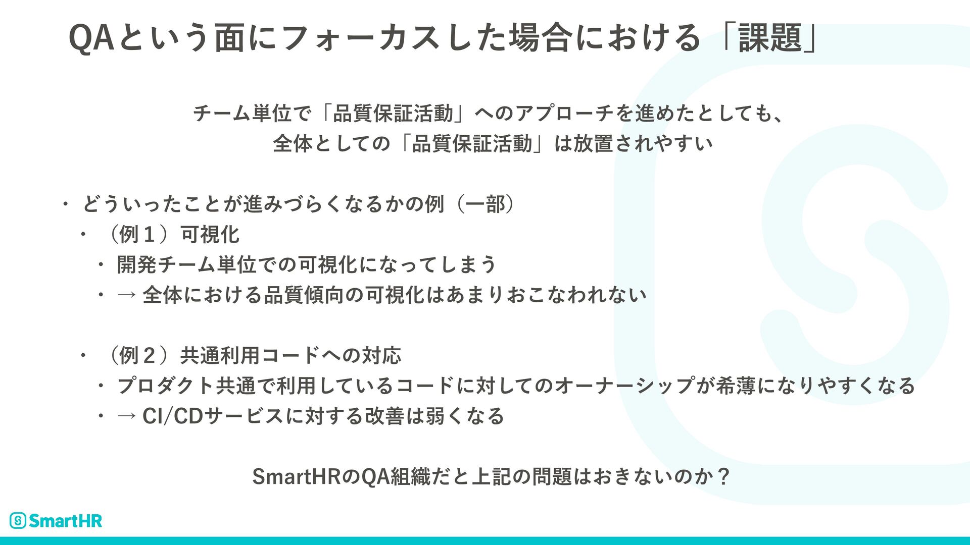 ˠશମʹ͓͚Δ࣭ͷՄࢹԽ͋·Γ͓͜ͳΘΕͳ͍ w ʢྫ̎ʣڞ௨ར༻ίʔυͷରԠ w ϓϩμΫτڞ௨Ͱར༻͍ͯ͠Δίʔυʹରͯ͠ͷΦʔφʔγοϓ͕رബʹͳΓ͘͢ͳΔ w ˠ$*$%αʔϏεʹର͢Δվળऑ͘ͳΔ 4NBSU)3ͷ2"৫ͩͱ্هͷ͓͖ͳ͍ͷ͔ʁ