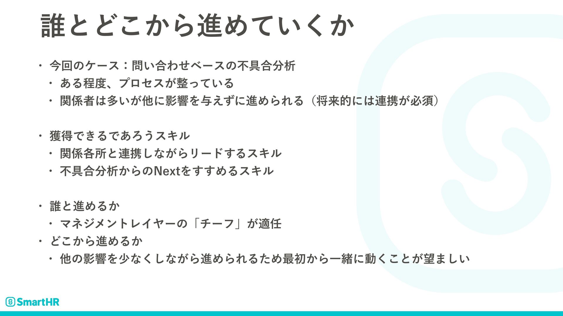 ֤ؔॴͱ࿈ܞ͠ͳ͕ΒϦʔυ͢ΔεΩϧ w ෆ۩߹ੳ͔Βͷ/FYUΛ͢͢ΊΔεΩϧ w ୭ͱਐΊΔ͔ w ϚωδϝϯτϨΠϠʔͷʮνʔϑʯ͕ద w Ͳ͔͜ΒਐΊΔ͔ w ଞͷӨڹΛগͳ͘͠ͳ͕ΒਐΊΒΕΔͨΊ࠷ॳ͔ΒҰॹʹಈ͘͜ͱ͕·͍͠