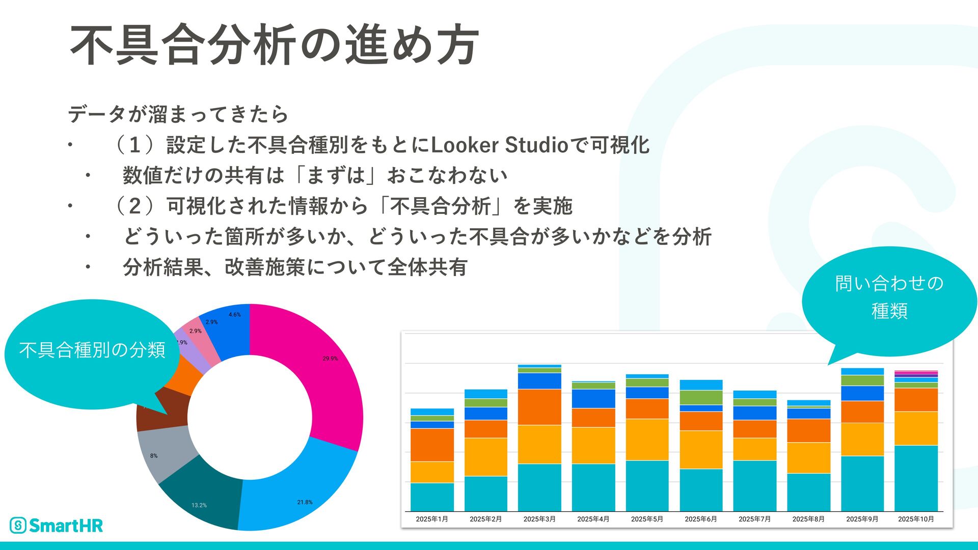 ෆ۩߹ੳͷਐΊํ σʔλ͕ཷ·͖ͬͯͨΒ w ʢ̍ʣઃఆͨ͠ෆ۩߹छผΛͱʹ-PPLFS4UVEJPͰՄࢹԽ w ͚ͩͷڞ༗ʮ·ͣʯ͓͜ͳΘͳ͍ w ʢ̎ʣՄࢹԽ͞Εͨใ͔Βʮෆ۩߹ੳʯΛ࣮ࢪ w Ͳ͏͍ͬͨՕॴ͕ଟ͍͔ɺͲ͏͍ͬͨෆ۩߹͕ଟ͍͔ͳͲΛੳ