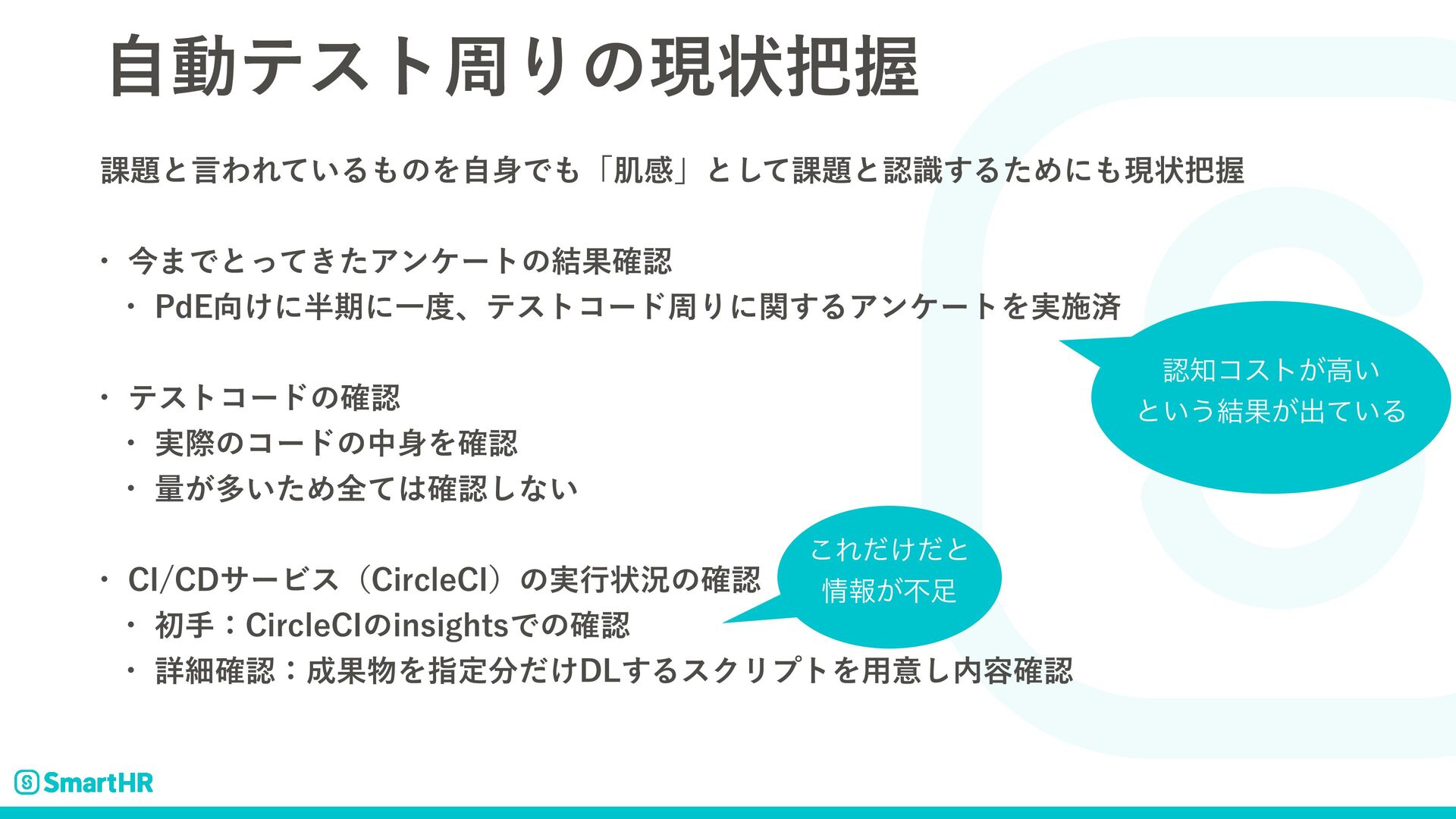 ࣗಈςετपΓͷݱঢ়Ѳ ՝ͱݴΘΕ͍ͯΔͷΛࣗͰʮഽײʯͱͯ͠՝ͱೝࣝ͢ΔͨΊʹݱঢ়Ѳ w ࠓ·Ͱͱ͖ͬͯͨΞϯέʔτͷ݁Ռ֬ೝ w 1E&͚ʹظʹҰɺςετίʔυपΓʹؔ͢ΔΞϯέʔτΛ࣮ࢪࡁ w ςετίʔυͷ֬ೝ w ࣮ࡍͷίʔυͷதΛ֬ೝ