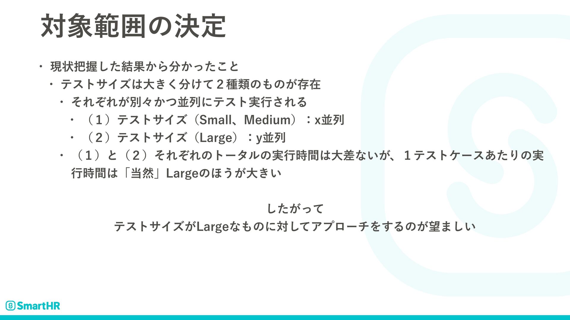 ରൣғͷܾఆ w ݱঢ়Ѳͨ݁͠Ռ͔Β͔ͬͨ͜ͱ w ςεταΠζେ͖͚ͯ̎͘छྨͷͷ͕ଘࡏ w ͦΕͧΕ͕ผʑ͔ͭฒྻʹςετ࣮ߦ͞ΕΔ w ʢ̍ʣςεταΠζʢ4NBMMɺ.FEJVNʣɿYฒྻ w